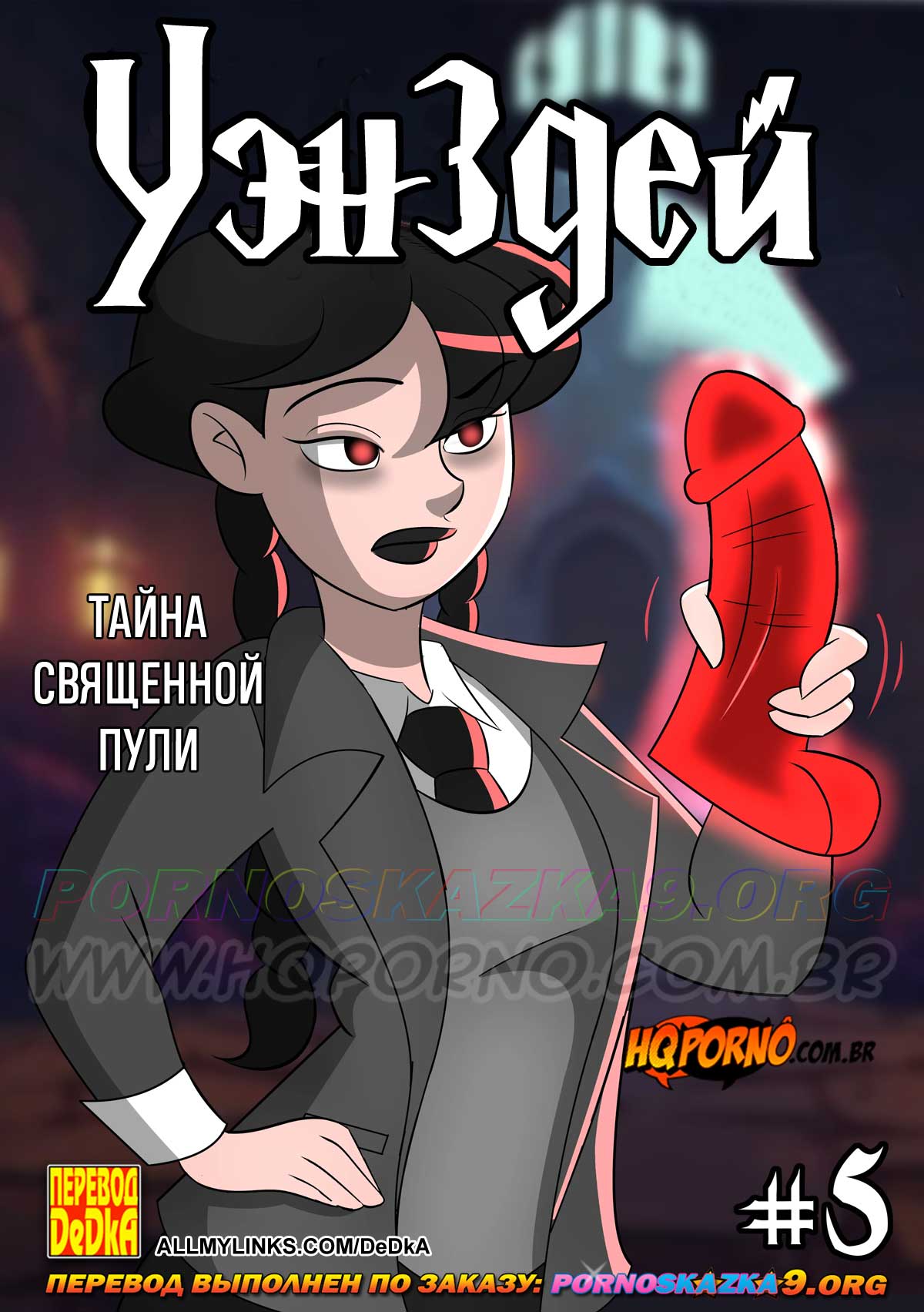 Читать далее 04 Дек 2025 12445 0Порно комикс «Уэнздей. Часть 5. Тайна священной пули.»